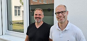 Jan Brodzinski und Henning Zeuge sind die Coaches des StellWERK in Bad Segeberg. Sie helfen Menschen gleich zu Beginn eines Bürgergeldbezuges. Das StellWERK in Bad Segeberg gibt es jetzt seit 10 Jahren. Von Anfang an sind die beiden Mitarbeiter in dem Projekt. Zunächst waren sie ausgelagert in der Theodor-Storm-Straße und nun im Jobcenter-Neubau im Birkenring.